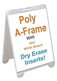 This poly-plastic a-frame features a molded handle for easy portability. It is made from polyethelene material and uses removable 22" x 28" insert panels. Avoid rust and splinters from common steel or wood frames. Lightweight and secure for everyday use on lawns, sidewalks, driveways, and streets.