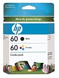 HP 60 INK CARTRIDGE COMBO PACK IDEAL FOR: Yield3: 200 pages (Black); 165 pages (Color) |