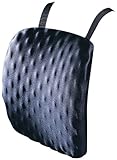 Spinal comfort and support through an anatomically molded plate covered in eggshell foam. Encourages correct posture. Back straps criss-cross for easy adjusting and secure mounting. Designed to fit most office chairs. Washable stretch Lycra® cover. Black.